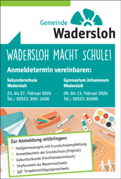 Wadersloh macht Schule - Anmeldetermine